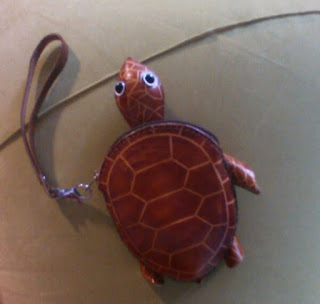 Кстати, забыла похвастаться, в этом же ларьке месяц назад, я купила вот эту черепаху -кошелек (он небольшой, с ладонь) из натуральной кожи за 500 рублей (там до сих пор продается такая же ярко-розовая, но она какая-то очень кислотная и ее еще никто не купил):